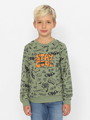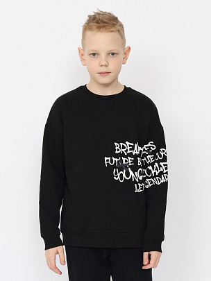 Джемпер для мальчика с длинными рукавами. Горловина, рукава и низ изделия с эластичной резинкой. На полочке декоративная шелкография.