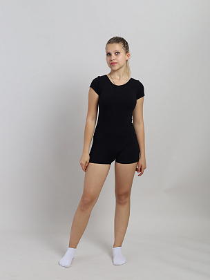 Купальник с длинным рукавом и с юбкой из сетки в цвет основного полотна. Вырез горловины и проймы ножек окантованы бейкой из основного полотна.