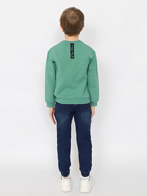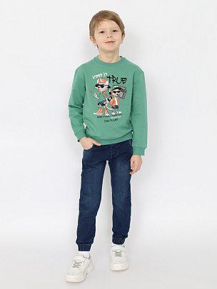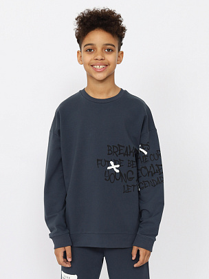 Джемпер с длинными рукавами и притачным поясом. Рукава втачные с манжетами по низу. Воротник, манжеты и пояс выполнены из полотна с эластаном. Перед и спинка декорированы принтом "Оставайся хладнокровным, следуй своим собственным правилам".