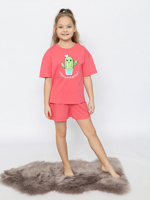 Пижама для девочки (футболка, шорты) малиновая