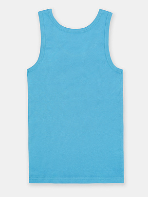 Гладкокрашенная майка с плечом. Горловина и проймы обработаны окантовкой из основного полотна. Перед оформлен шелкографией.