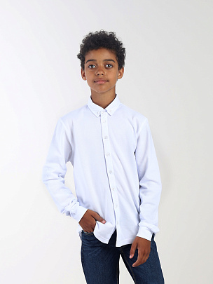 Рубашка-поло для мальчика. Модель с короткими рукавами и отложным воротником. Спереди застежка на пуговицы.