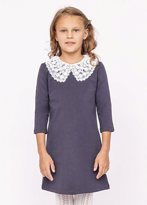 Платье для девочки с втачными рукавами 3/4. Воротник вязанный, отстегивающийся. Спинка со средним швом, в верхней части которого обработана застежка на пуговку.