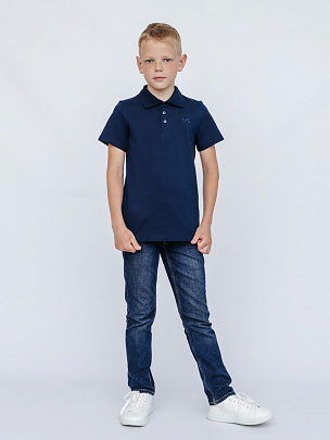 Рубашка-поло для мальчика. Рукава с манжетами. Модель с длинными рукавами и отложным воротником. Спереди застежка на пуговицы.
