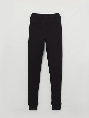 Кальсоны без боковых швов из мягкого трикотажа. Спереди обработана фигурная вставка снизу с вытачкой. Пояс притачной, из рибаны с эластаном, с вставленной внутрь резинкой. Нижние срезы кальсон обработаны притачными манжетами из рибаны с эластаном.